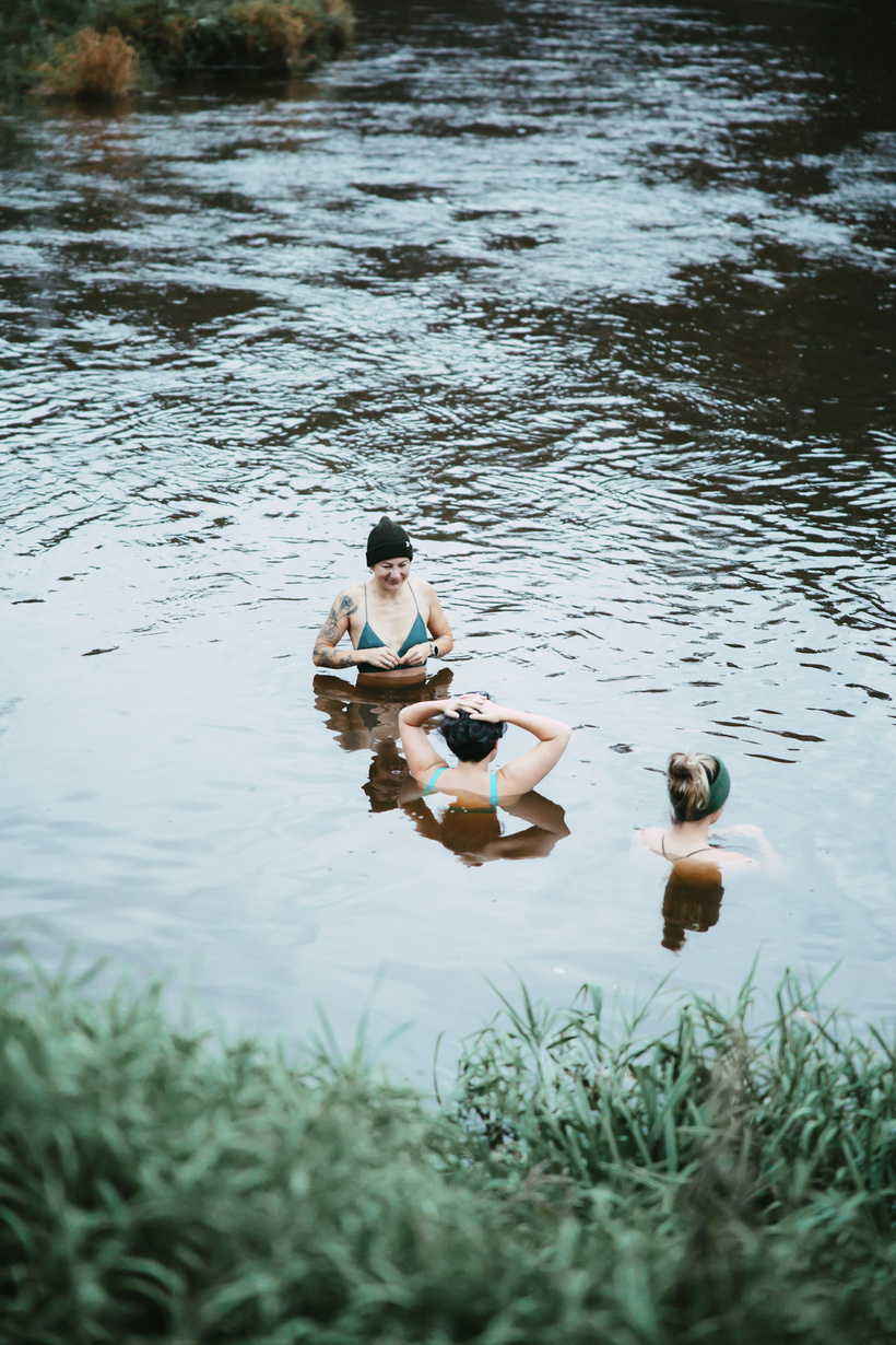 Rītu sākām ar aukstumpeldi Gaujā. Kurai tā bija pirmā reize, kurai kārtējā - tas nebija svarīgi. Te cita citu iedvesmoja iet un pamēģināt. Kāda gribējusi jau sen, bet nav saņēmusies, kāda pastāvēja malā un priecājās par tām, kuras ieslīdējušas vēsajā ūdenī atrast mierīgāku elpu.