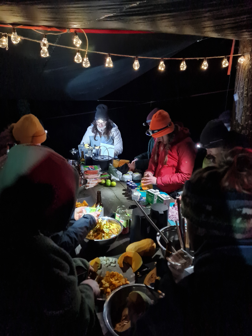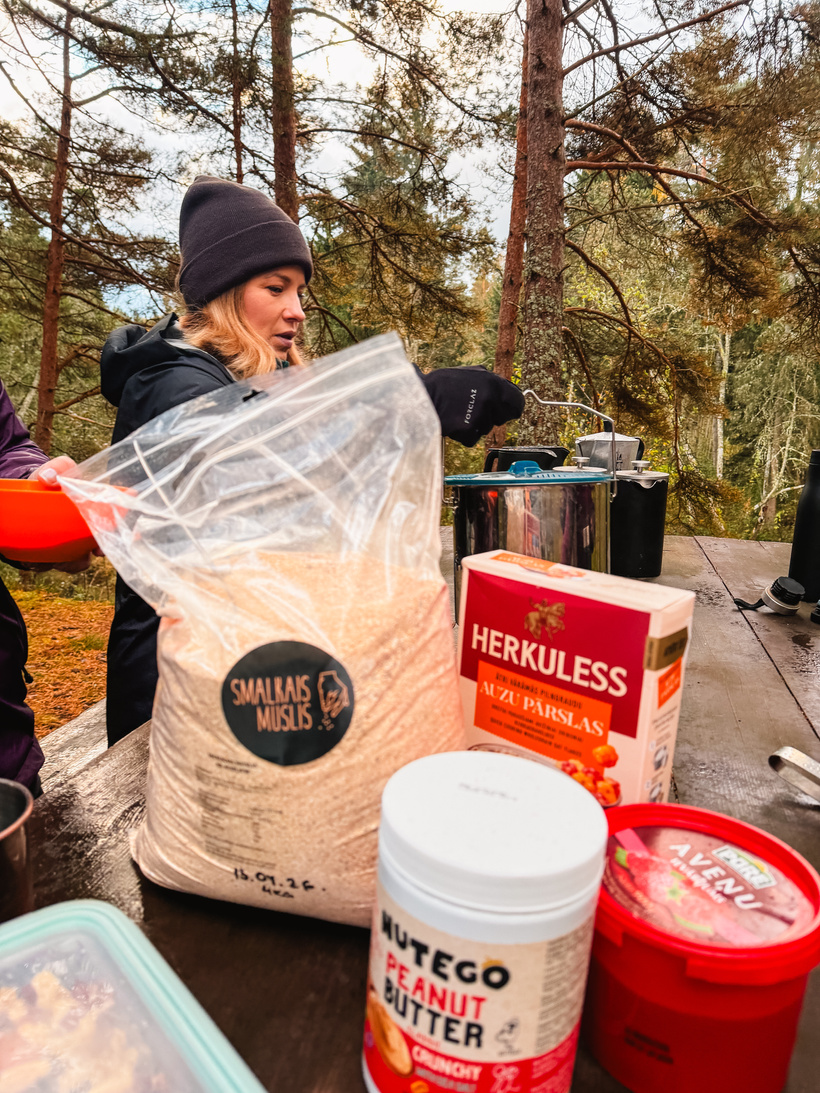 Jāpastāsta arī par mūsu gurmāniskajām izvirtībām. Pusdienās mēs pagatavojām "Adventure Food" un, lai uzsildītu ūdeni, izmantojām "Jetboil" sistēmas, kuras ātrāk uzsilda ūdeni arī aukstā laikā. Ar parastajiem deglīšiem tas var būt izaicinājums. Savukārt vakariņās mums bija uz ugunskura sviestā cepti pelmeņi, bet brokastīs sevi lutinājām ar pankūkām. Kā izklausās? Jā, to visu atnesām savās mugursomās!