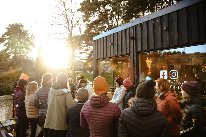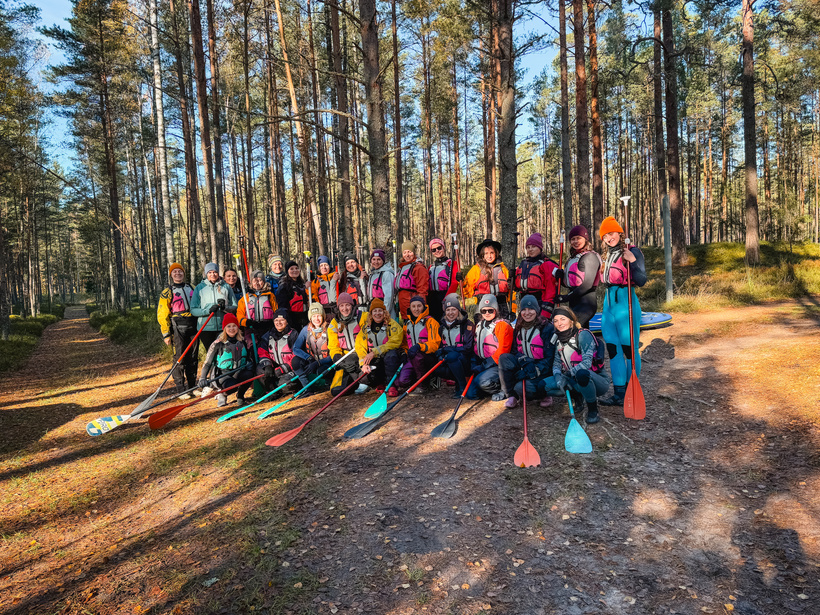 Pēc jogas nobaudījām karstu kakao, vieglas brokastis un bijām gatavas kopīgi novākt nometni, lai brauktu rudenīgā SUP piedzīvojumā.