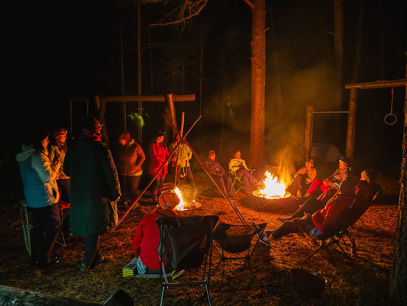 🏕 Vakars pagājā iedvesmojošu ugunskura sarunu, nebeidzamu smieklu, daudz piedzīvojumu stāstu virmojumā ar “Meža meitām”.