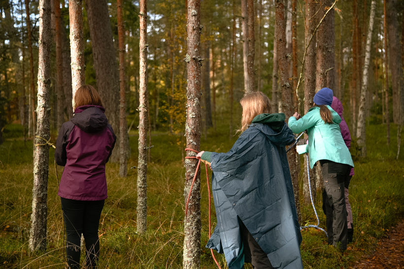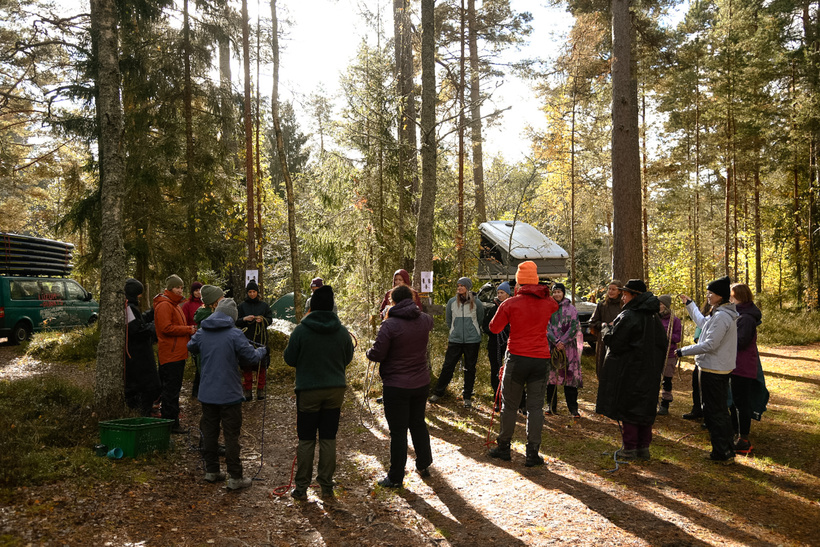 Ar Stiinu un Liisi Preedin — kartes, reljefs, kompasa prasmes un īsta praktiska darbošanās. Ļoti vērtīgi, praktiski. Darbs ar kompasiem, plānošanu uz kartes un pēc tam arī dabā. Skatīties un vērtēt dabu, reljefu, salīdzināt kā izskatās kartē un kā realitātē dabā uz vietas. Darbs nelielās grupās, pārgājiens ar savu devu dubļu brišanu.
