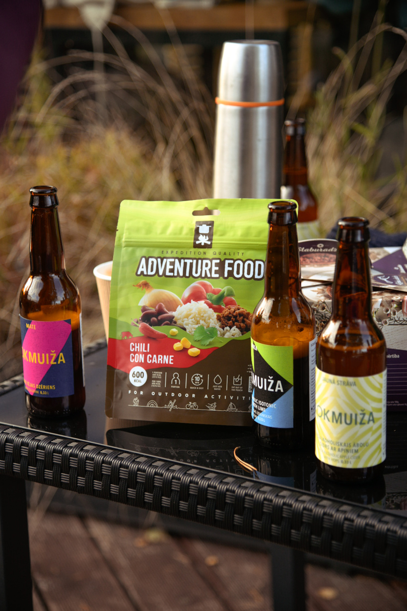 SUP dēļu kaudzes, Kokmuižas gardie dzērieni, smiekli un pusdienās — Adventure Food maltītes no draugiem, veikala “Ceļotājs”.
