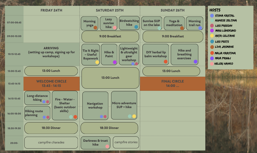 Starp lietus lāsēm, vēja brāzmām, mazliet nosalušiem pirkstiem un deguniem, izmirkušiem zābakiem, aukstumpeldēm, atsvaidzinošu rudens supošanu - mēs radām mieru, stāstus, jaunas pazīšanās un dzirksteļojošus smieklus.
